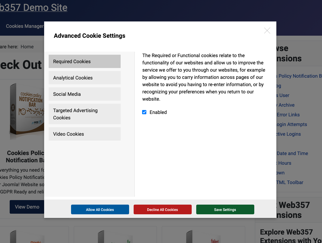 - Select Open Cookies Manager Modal.