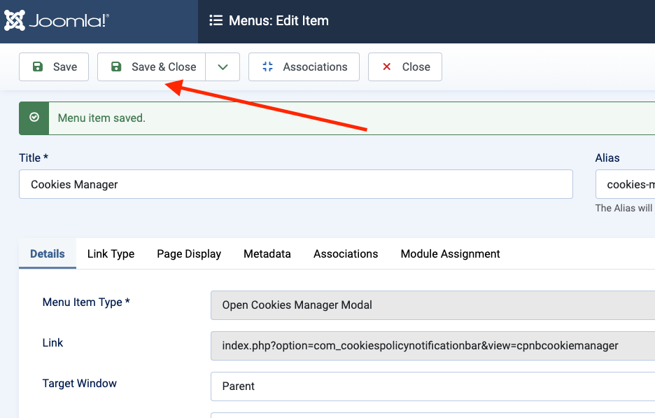 - Click Save & Close.